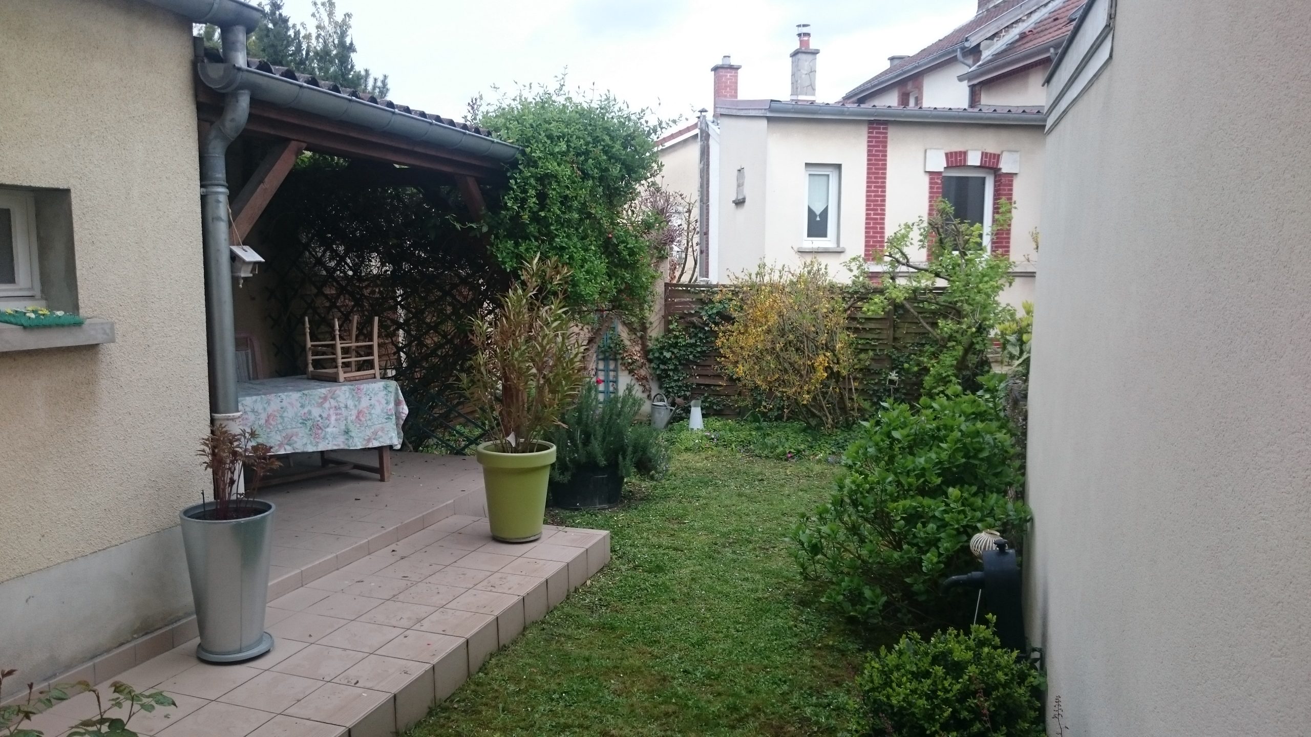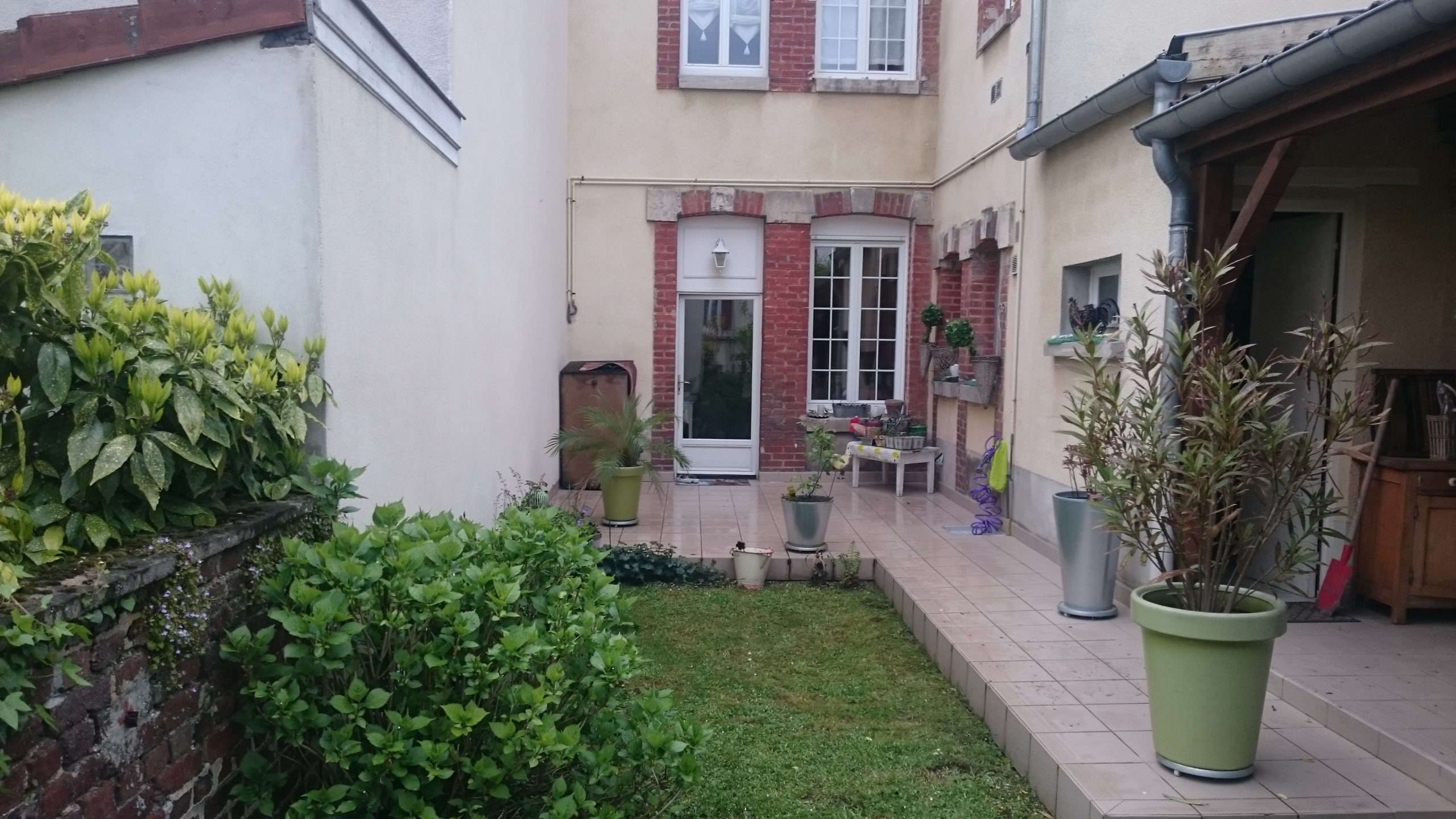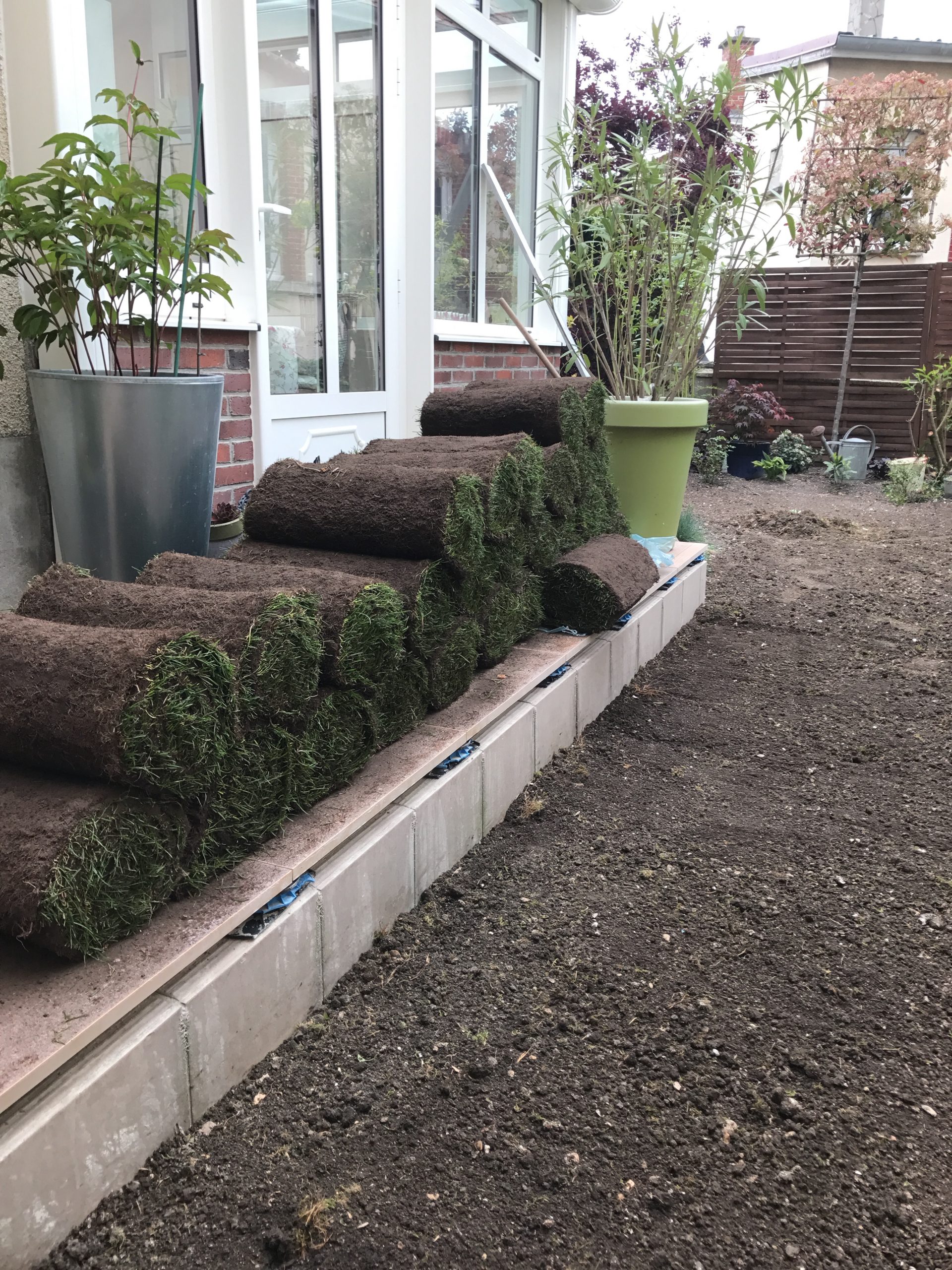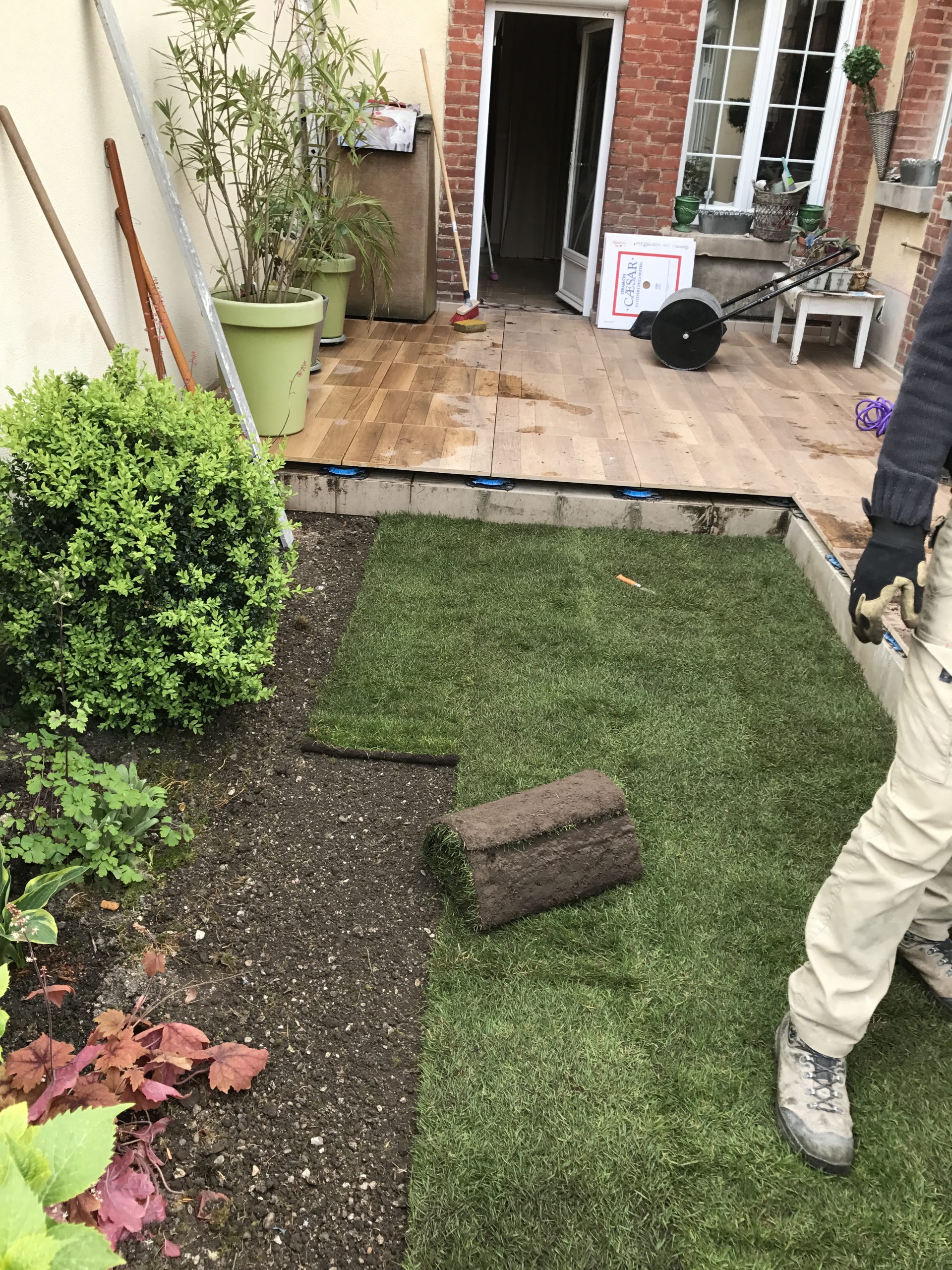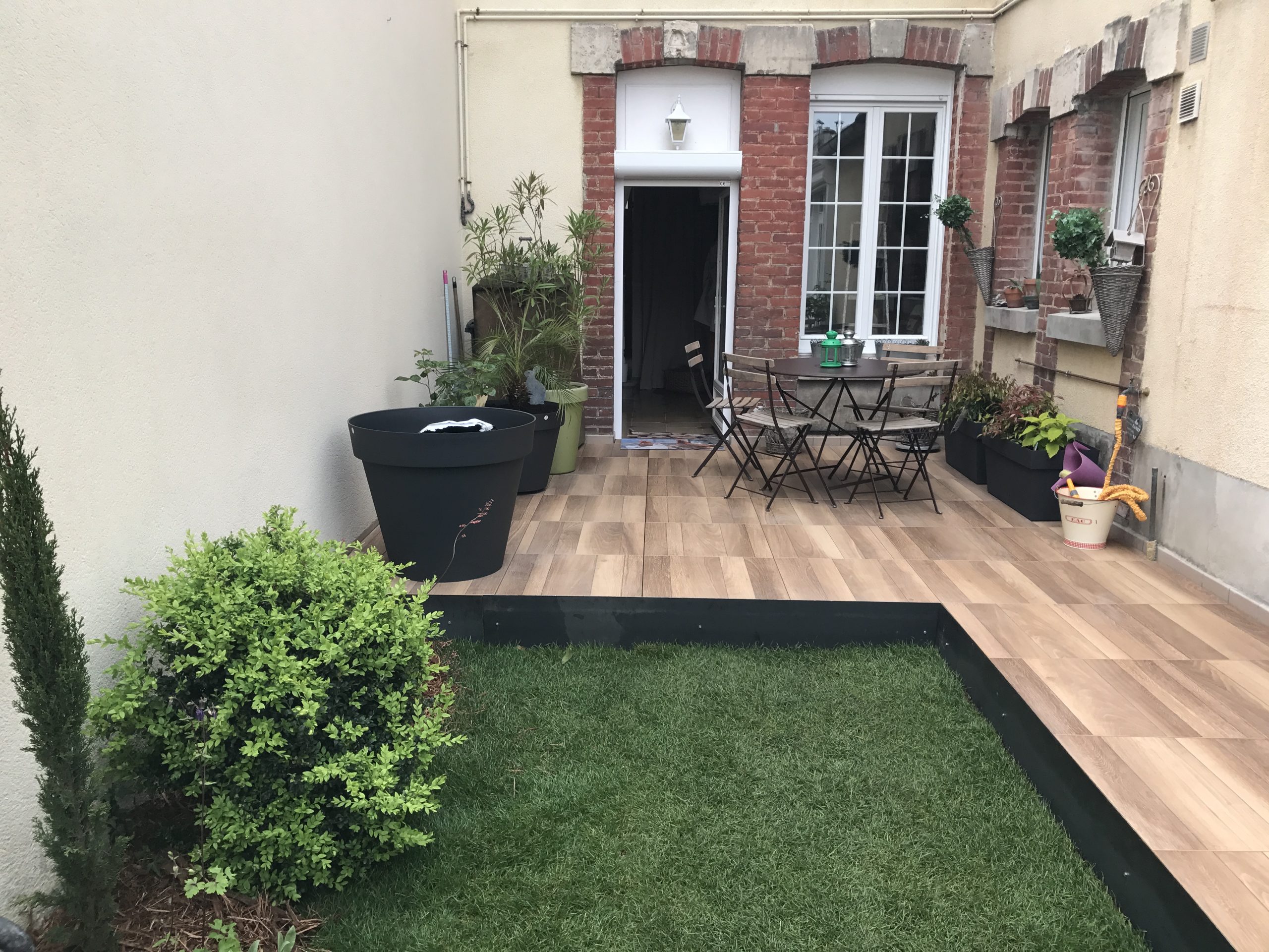 Reprise d’un jardin en centre-ville. Réfection d’une terrasse en dalles céramiques sur plots. Dalle imitation bois et finition en métal. Pour finir nous avons refait la pelouse avec du gazon de placage, et crées différents massifs paysagers. Réalisation sur Épernay.